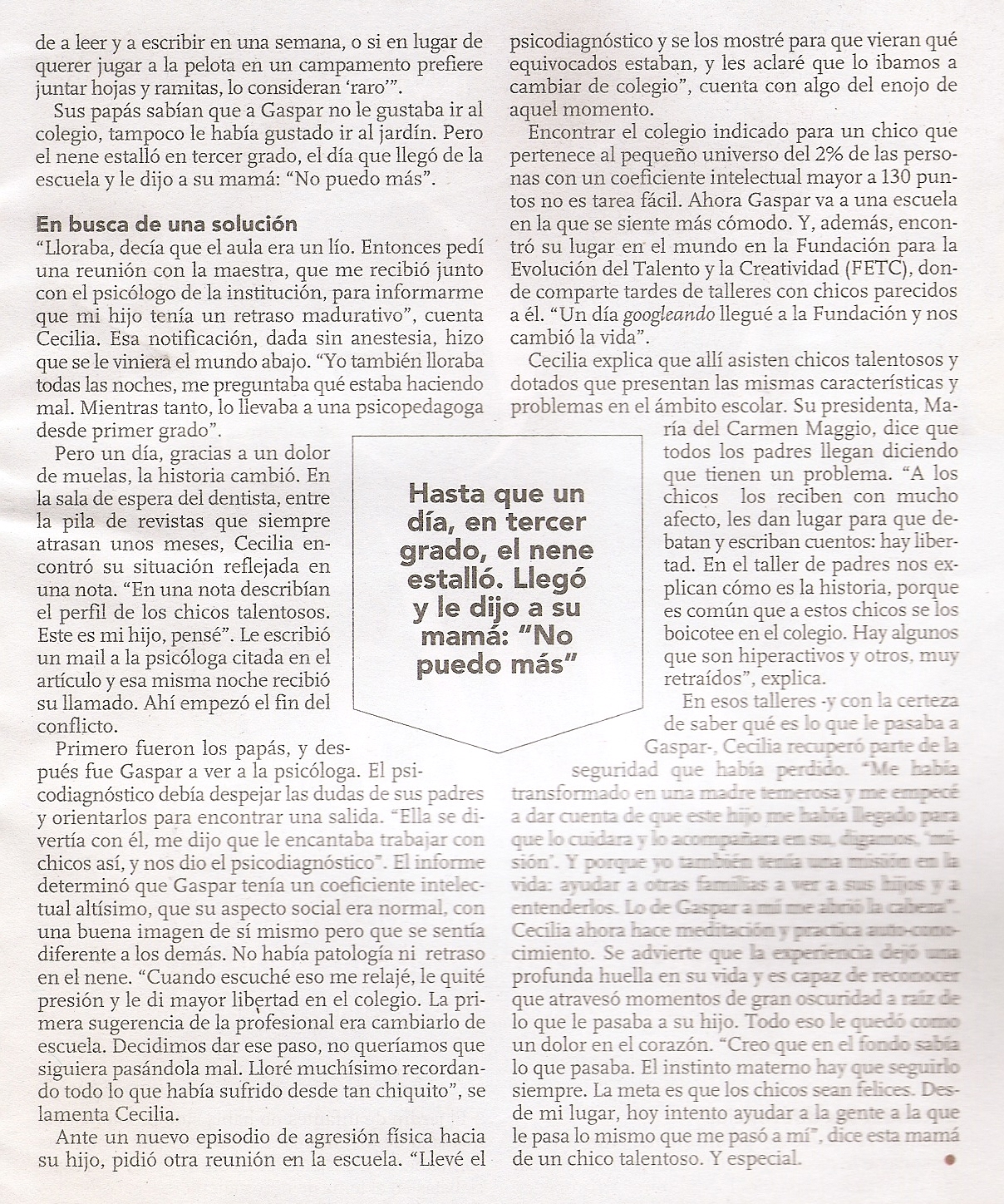 Muchas gracias a la mamá, por permitirme mostrar este artículo, que fue realizado por la revista Clarín Mujer del viernes 08 de junio de 2012.- Hicieron la nota Paola Aguilar y Juan José Traverso.